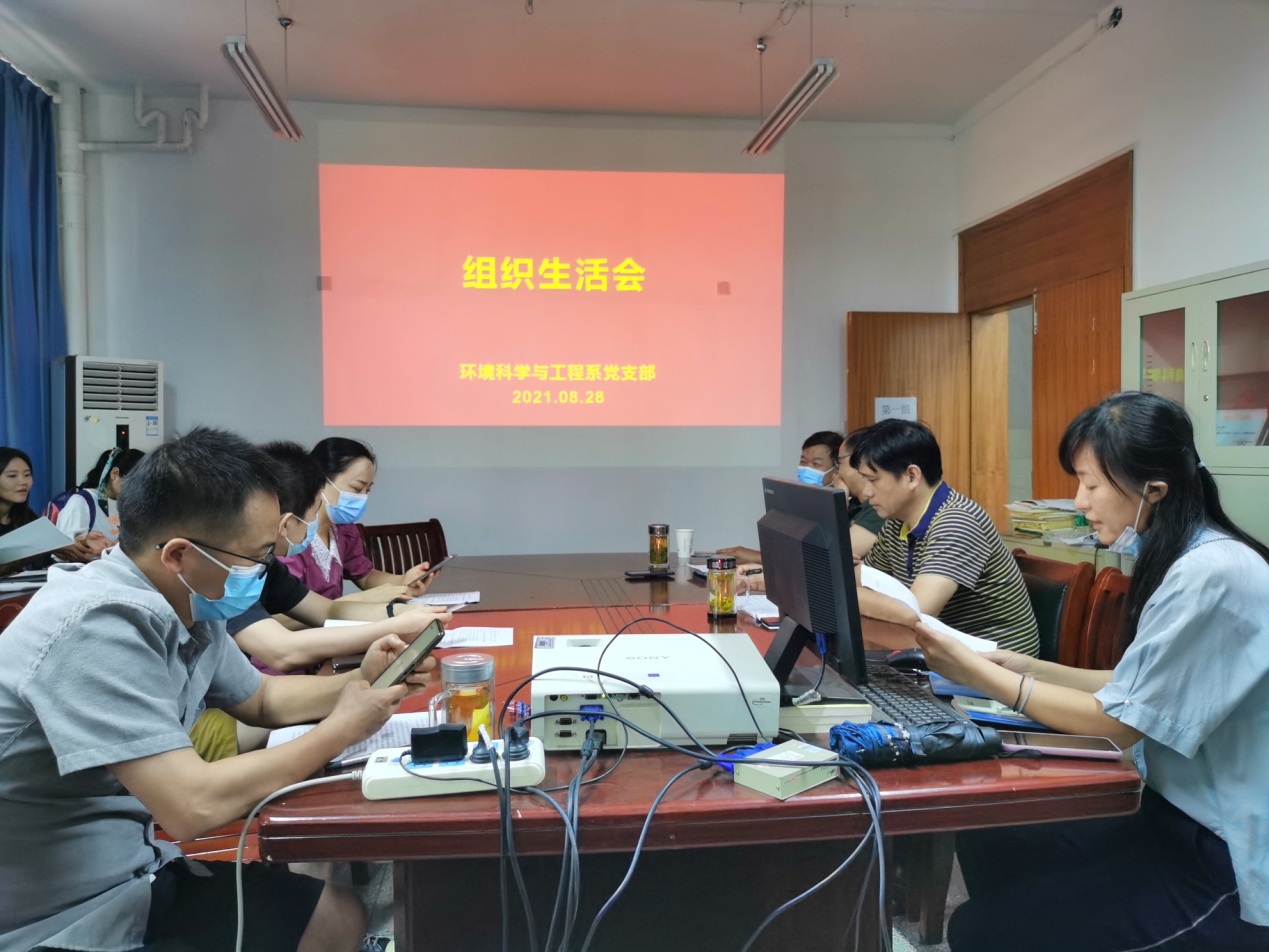 2021年8月28日上午,环境科学与工程系全体党员在能环楼316召开了党史学习教育专题组织生活会,支部正式党员和预备党员共19人全部参加了会议,公司党委谢文平副书记列席指导。会前支部已组织学习了《习近平总书记在党史学习教育动员大会上的重要讲话》、《习近平总书记在庆祝中国共产党成立100周年大会上的重要讲话》、《习近平总书记考察安徽重要讲话指示精神》、《中国共产党简史》等相关资料。会上由支部书记孟海玲同志向全体党员同志通报了2020年年底组织生活会整改落实情况,并且汇报了本次组织生活会会前征求意见建议情况,随后代表支部班子对支部工作进行了剖析,认真总结过去,提出不足,并对未来的发展提出了整改措施。