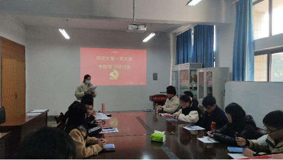 会前,研究生第一党支部为本次专题学习研讨会做了充足的准备,将党的二十大报告、党章、习近平总书记在中央政治局民主生活会上的重要讲话精神和省委十一届四中全会精神等文件发给每位党员,请党员们提前自学。