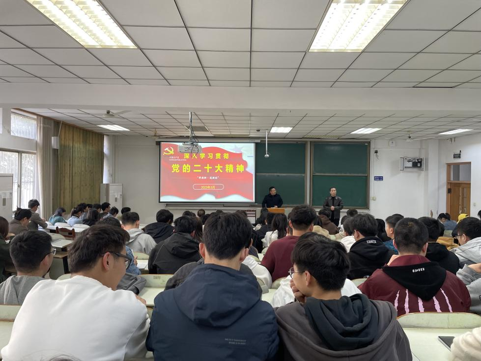 为深入学习宣传贯彻党的二十大精神,3月6日下午,英国正版365官方网站邀请公司党委讲师团成员----马克思主义公司经理、教授高敏在佳山校区教三南102为公司全体师生党员宣讲党的二十大精神。会议由党委书记凤杰主持。