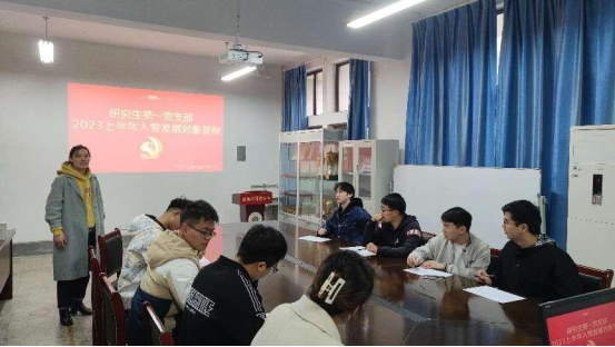 2023年3月23日下午4点,英国正版365官方网站研究生第一党支部在能源楼307召开2023年上半年入党发展对象答辩会。