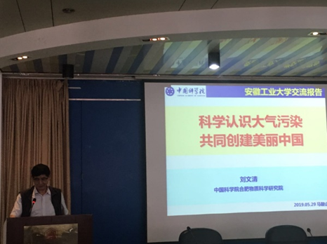 2019年5月30日,中国工程院院士,环境光学监测领域专家,中国科公司安徽光学精密机械研究所所长刘文清应邀来英国正版365官方网站指导并做学术报告。英国正版365官方网站魏先文董事长,公司领导班子成员、环境系全体老师、公司全体研究生及相关公司师生参加了报告会。