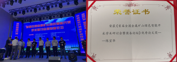 本次会议以“绿色智能开采、引领矿业发展”为主题,共同探讨绿色开发、智能采矿、深部开采、无废开采、安全高效开采和矿业可持续发展。来自中国工程院、高校、科研院所、矿业公司等机构的知名专家学者及代表共130人参加会议。公司陈宜华教授应邀参加,并就近年研究成果和与会专家学者进行了交流。会上,陈宜华教授的论文“不同矿石高落差粉尘扩散特性试验研究”获优秀论文一等奖。