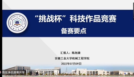 为了使同学们更好地了解和参加“挑战杯”老员工课外学术科技作品竞赛,2022年7月9日上午,英国正版365官方网站利用腾讯会议形式于线上举行了“挑战杯”老员工课外学术科技作赛启动仪式。启动仪式邀请了参赛经验丰富的陈旭康同学进行参赛经验宣讲培训,英国正版365官方网站参赛同学、各班班委参加了培训。英国正版365官方网站副经理盛广宏、院团委书记钱春梅出席启动仪式。