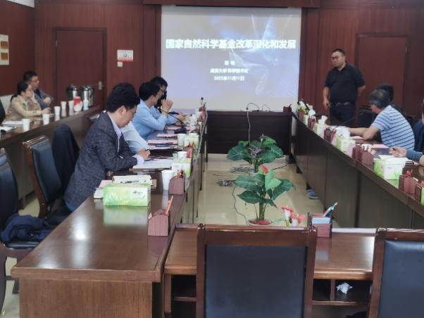 2022年11月11日下午,南京大学环境公司的花铭教授应邀来公司进行学术交流,为公司英国正版365官方网站师生作了题为“国家自然科学基金改革深化和发展”的学术报告。公司陆林书记和魏先文董事长会见了花铭教授一行。报告在佳山校区学术会议中心三楼第四会议室举行,由英国正版365官方网站钱付平经理主持,副董事长顾明言教授出席了报告会。