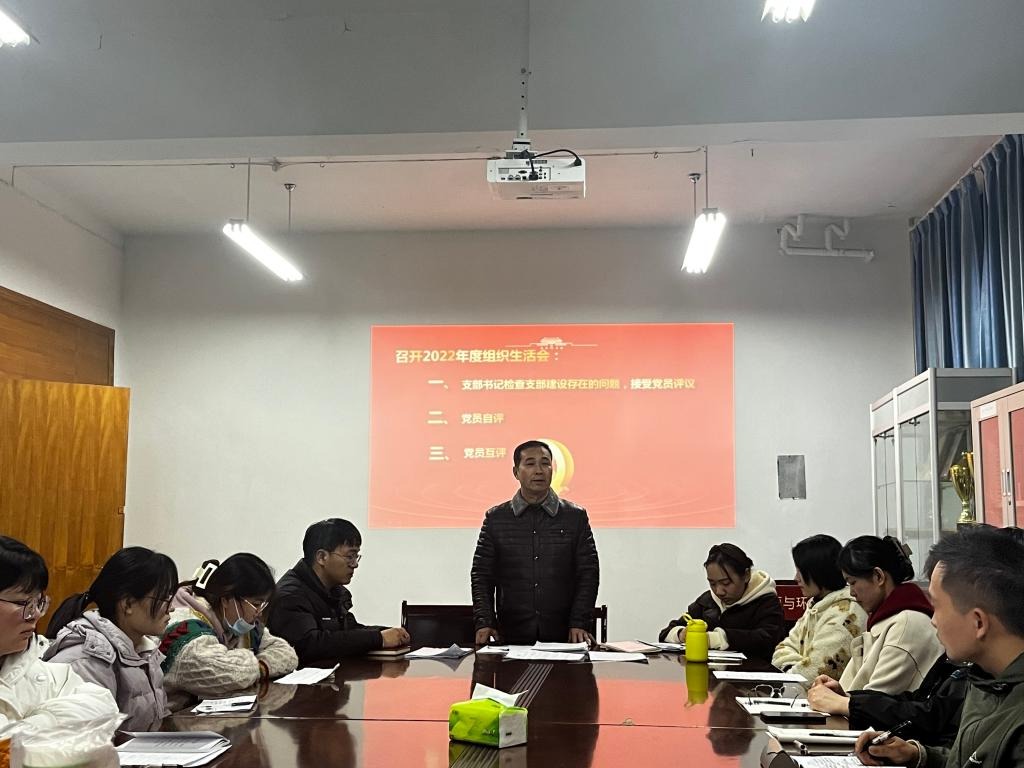 大会伊始,支部书记王稳定带领全体党员认真学习了党的二十大报告、党章和习近平总书记在党的二十届一中全会上的重要讲话精神,指出应全面准确地领会党的二十大精神,注重运用相关材料开展学习。随后,依照组织生活会和民主评议党员的具体流程和要求,由支部书记带头,支委成员、全体党员依次严肃地开展批评与自我批评。各位党员根据实际生活中的表现,对照八项党员义务和“六个是否”要求,用具体事例主动查摆自身问题,勇于面对他人的批评指正,提出相应的整改措施,并认真客观地剖析其他党员的缺点与不足。