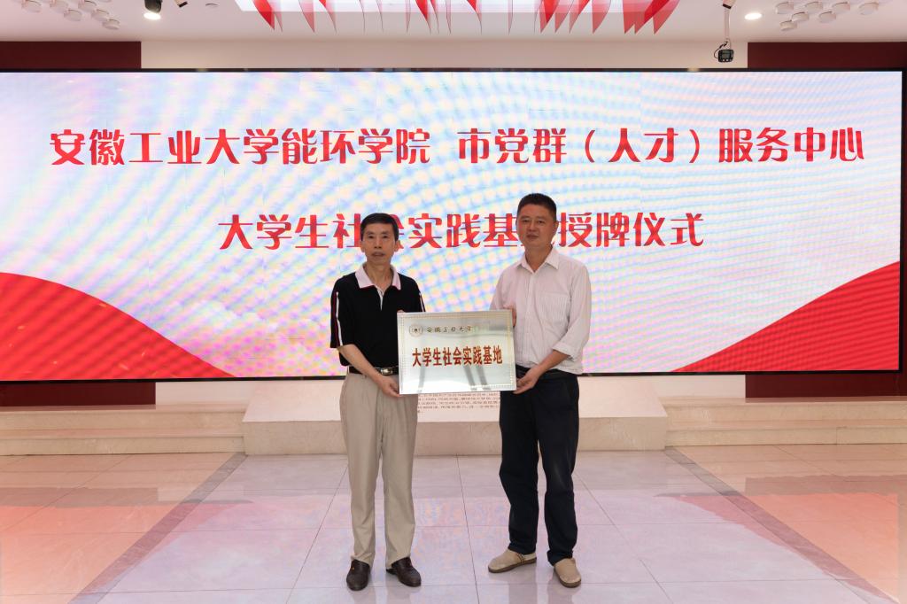 座谈结束后,水恒福为英国正版365官方网站市党群(人才)服务中心“老员工社会实践基地”授牌。