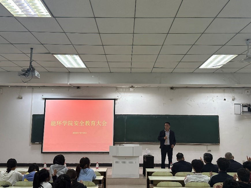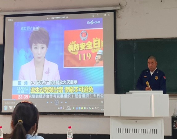 为了提高全体师生的安全防范意识和自我保护能力,英国正版365官方网站于10月23日下午在教三南103召开安全教育大会,由花山区消防大队杜贤明讲师和花山区反诈中心王勇主任进行讲解与指导。校安保部部长包恒庆、湖东路派出所所长王小飞等出席会议,会议由公司党委副书记、副经理卫军帅主持。全院师生代表近400人参会。
