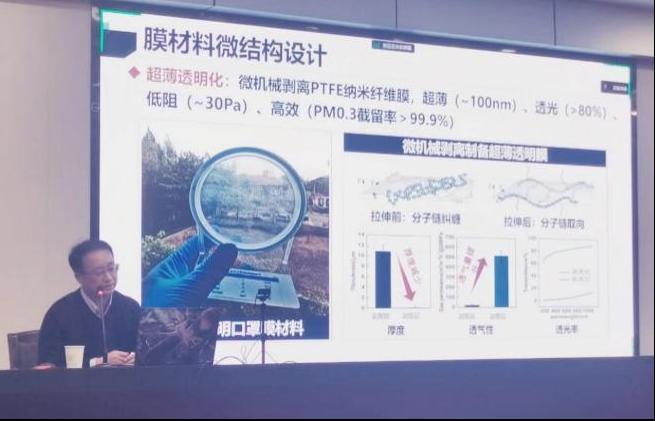 仲兆祥教授从新冠疫情的防控入手,讲解了空气中有害污染物质的分类及尺度分布,指出在后疫情时代,用于病毒防护的空气过滤材料将成为重大需求。同时他介绍了纳米纤维膜的应用优势、常用制备方法及过滤原理,提出超薄透明化微机械剥离PTFE纳米纤维膜的制备思路。指出层间界面阻力是膜传质阻力的另一重要构成,提出跨层结构或多层次结构,能够有效分析膜材料结构与气体渗透性或截留率之间的构效关系。最后,仲兆祥教授还介绍了多污染物的反应与分离协同进化机制,其中包括二次载体的精准设计及Ai性能预测等。