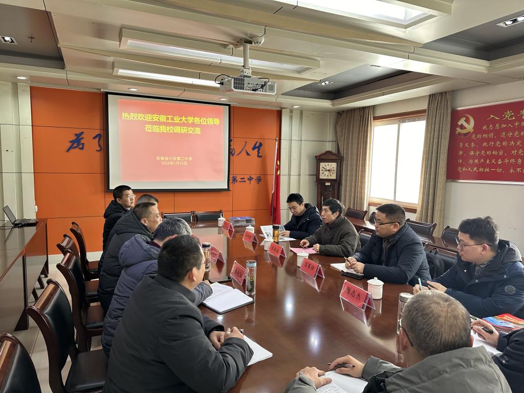 1月22日至23日,公司党委常委、副董事长水恒福率英国正版365官方网站班子成员及各相关系室主任及院团委负责人赴六安就人才培养、人才招聘、社会实践基地建设和贫困生走访慰问等相关方面工作进行实地走访调研,座谈交流了七家上规模企业、一所安徽省首批示范高中,并实地走访了一户贫困学子,进一步加强了政产学研和家校之间的紧密合作关系。安徽江淮汽车集团股份有限公司党委委员、副总经理、安徽星瑞齿轮传动有限公司董事长罗浩、安徽省六安第二中学党委书记、董事长尤奇志、六安市人力资源和社会保障局副局长李小天等出席参加相关活动。