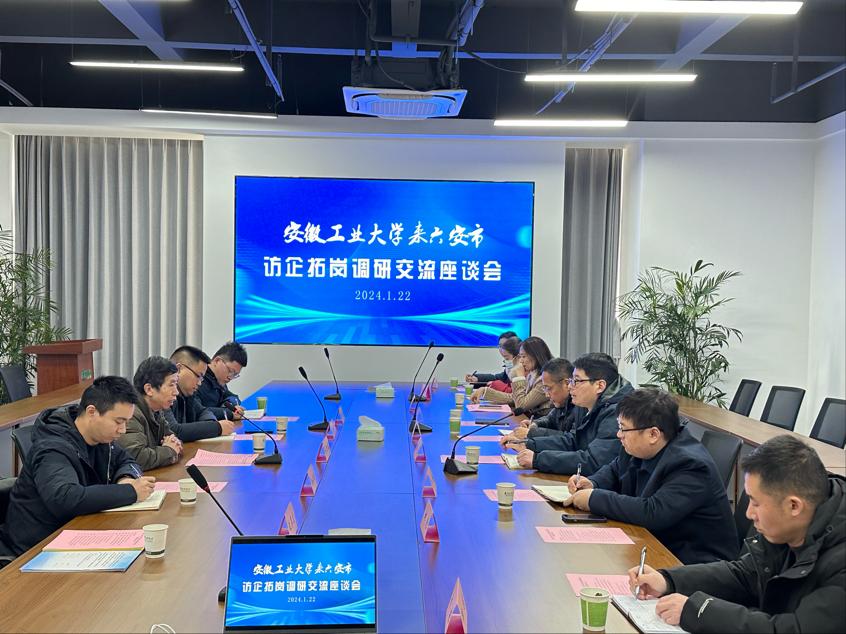 1月22日下午,水恒福一行与六安市人社局、多家制造企业开展访企拓岗调研交流座谈会。六安市人力资源和社会保障局副局长李小天对安工大一行的到来表示热烈的欢迎。座谈会上,水恒福介绍了公司的历史沿革、团队力量、办学条件、团队建设等情况,希望借助校企产学研合作机会,政校企协同育人、共谋高质量发展。参加座谈会的企业代表纷纷表达了企业转型、新材料研发、突破相关技术瓶颈以及特殊人才等方面的需求,期待进一步加强与英国正版365官方网站的产学研合作交流。