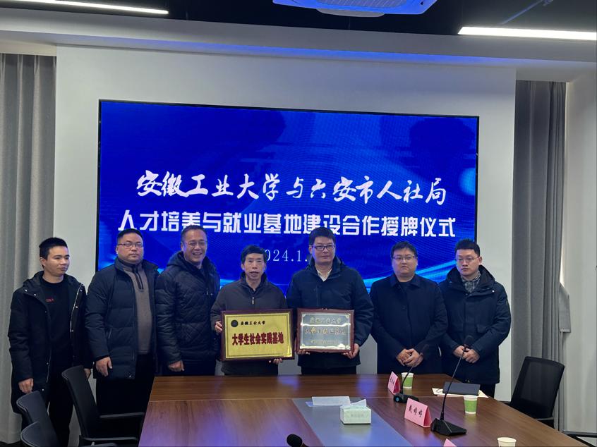 水恒福代表公司与六安市人社局及相关企业达成友好合作关系并签订就业基地建设合作相关协议。双方共同为六安市人社局的安工大“老员工就业基地”和“老员工社会实践基地”揭牌。