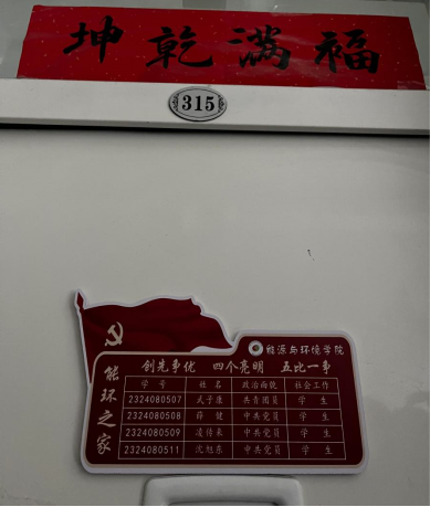 员工宿舍作为老员工思想政治教育的重要阵地,在全校师生深入学习贯彻党的二十大精神和党的二十届二中全会精神之际,为教育引导员工党员铭记党员身份,履行党员义务,做出党员表率,切实发挥员工党员先锋模范和榜样引领作用,提升员工党建工作质量,助推公司组织育人工作开展。3月中下旬,公司在研究生中开展“四个亮明 五比一争”主题系列活动之“能环之家”宿舍挂牌活动,为135间研究生宿舍挂牌,覆盖全体在校员工,积极营造员工党员亮明身份,创先争优的浓厚氛围。