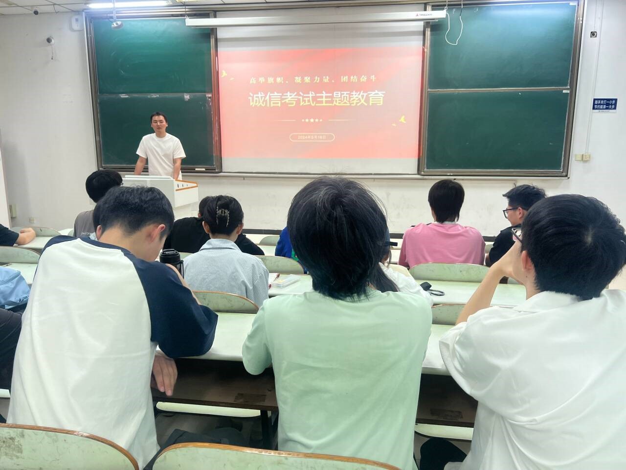 对于个人而言诚实守信是立身之本,是社会中的交往之道,更是立业之基。沈厚发强调了坚持诚信原则、弘扬诚信精神的重要意义及价值,他要求同学们不仅要认识到诚信的重要意义,也要践行诚信道德,做到知行合一、以知促行。随后,同学们集体学习了诚信考试相关法律法规的具体内容,包括《国家教育考试违规处理办法》《英国正版365官方网站员工违纪处分办法》及考场规则等政策法规相关文件。