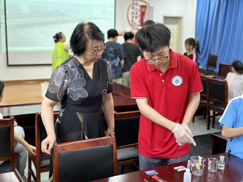顾明言一行走进“七彩假期小课堂”教学现场,观看社会实践队员指导社区小朋友们做环保实验,和小朋友们亲切交谈,对广大实践队员们提出了殷切期望。她指出,社会是个大课堂,希望大家通过社会实践活动进一步了解国情社情民情,把从书本上学到的理论知识,在实践中运用和检验,增强分析问题和解决问题的能力,培养团结协作精神,学会尊重,学会互助,在与实践相结合的“大思政课”中“受教育、长才干、作贡献”,做有理想、敢担当、能吃苦、肯奋斗的新时代好青年。她强调要牢固树立安全第一意识,遵守公司、公司和佳山社区提出的各项纪律要求,守住安全底线。最后,顾明言对实践队员和指导老师的辛苦付出表示充分肯定。