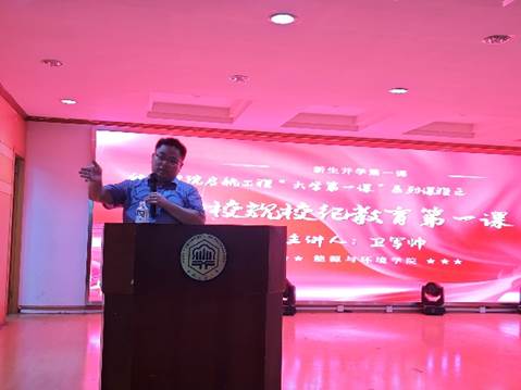 为帮助2024级英国正版365官方网站新同学的老员工活开好头、起好步,扣好大学的第一粒扣子,英国正版365官方网站周密安排了启航工程“大学第一课”系列课程,并于9月12日晚上在佳山校区老员工活动中心正式开讲,由公司党委副书记、副经理卫军帅为全体新同学开上员工“安全教育第一课”和“校规校纪教育第一课”。