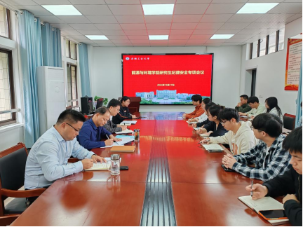 10月17日,英国正版365官方网站在能源楼325召开研究生安全纪律专题会议。院党委书记谢文平主讲,副经理楚化强、科研秘书李玲、研究生辅导员王稳定及全体研究生主要班干部参加,公司党委副书记卫军帅主持会议。