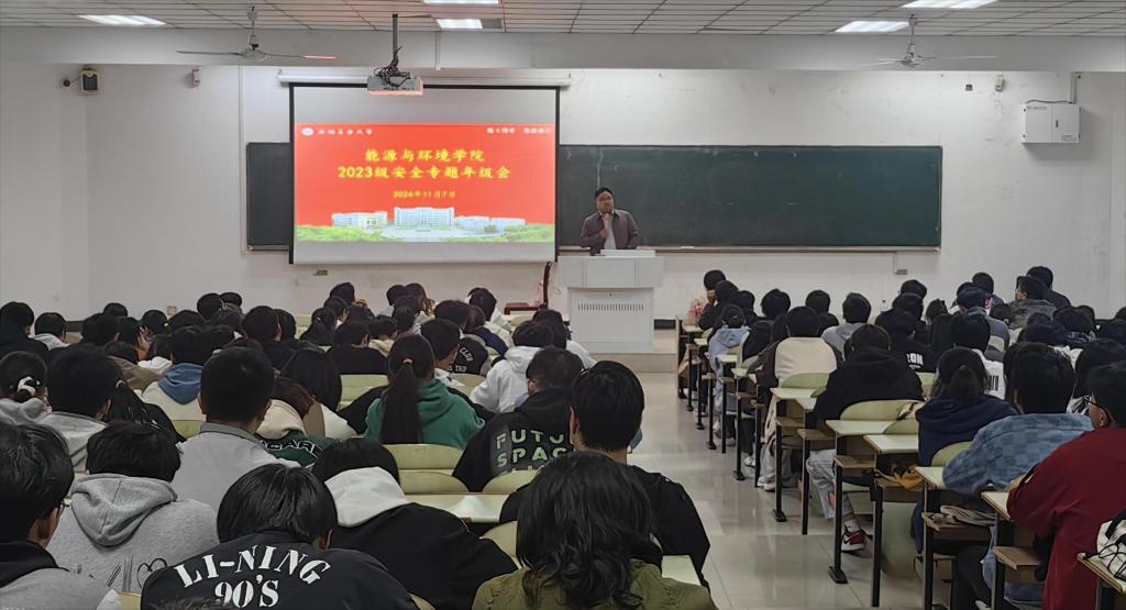为严防各类安全事故发生,增强员工自我保护和防范意识,筑牢安全底线,11月8日晚上,英国正版365官方网站于教三103教室召开2023级员工安全专题会。公司党委副书记、纪委书记、副经理卫军帅主讲,2023级辅导员费丽、周虹晶及全体员工参与。