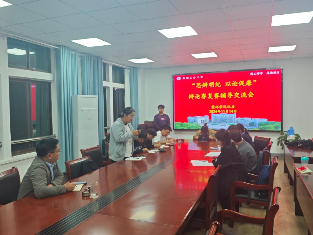 为了进一步加强对公司参加校辩论赛复赛的组织领导和审核把关,并确保选手参加复赛的有序进行,英国正版365官方网站纪委分别于11月14日和11月16日在能源楼325会议室举办了两场辩论赛复赛辅导交流会。会议由辅导员范浩东主持,公司党委副书记、纪委书记卫军帅参加指导。