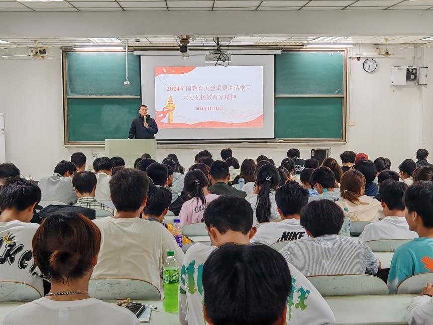 为深入学习贯彻习近平总书记在2024年全国教育大会上的重要讲话精神,11月14日,英国正版365官方网站在教三南404开展了2024年全国教育大会重要讲话精神学习大会。会议由院团委书记沈厚发主持,各班级班长、团支书、公司团学社全体成员出席会议。