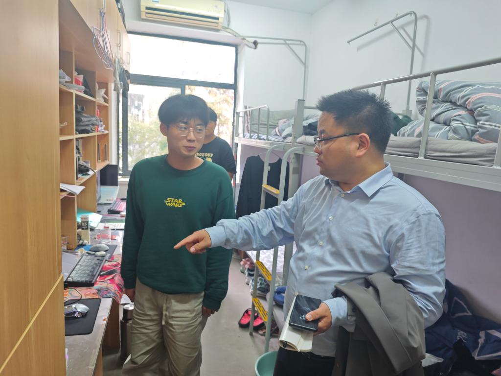 学工队伍对宿舍区进行了全面的安全卫生检查,包括消防设施、用电安全、宿舍卫生状况等。对检查过程中发现的安全隐患和卫生问题,当即对相应员工宿舍提出了整改要求。卫军帅一行走进各个员工宿舍,与员工进行了亲切的交流,了解他们的生活状况和需求,同时传达了公司对员工的关心与支持。他强调最近天气变化多样,同学们要注意饮食和穿衣,照顾好身体。另外,最近期中考试周临近,要做好功课复习,诚信考试。