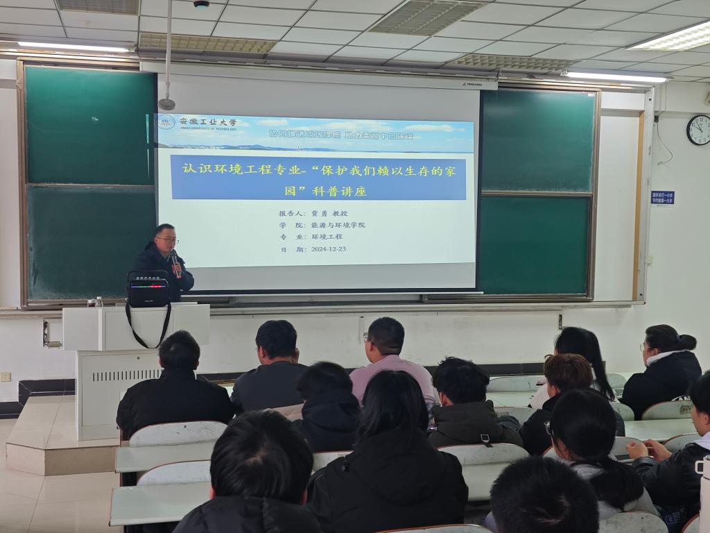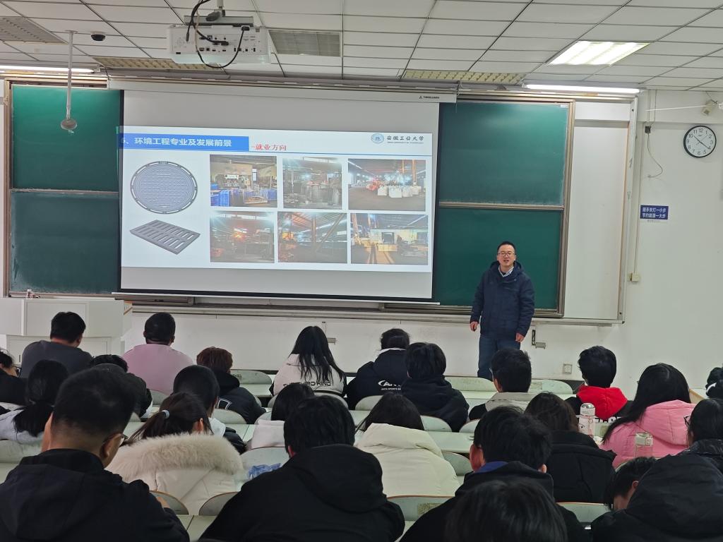 为加强2024级环境工程专业员工对专业的认识,进一步增强专业认同感,英国正版365官方网站于12月23日在教三南302举办了专场专业思想教育主题讲座。此次讲座由贾勇教授主讲,2024级辅导员范浩东主持,环境工程专业全体员工参与。