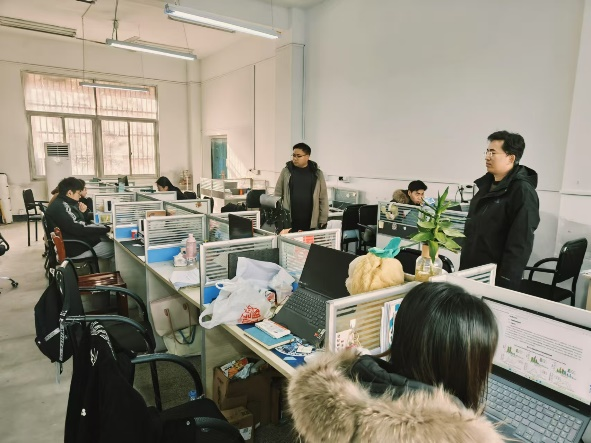 检查过程中,卫军帅重点强调工位的用电安全及物品摆放,认真检查了电线、电源及插座的布线及使用情况,提醒同学们完善桌面整理以及工作室公共空间的卫生环境。楚化强就公司楼宇工作室的标准化工位建设提出表扬,同时对部分实验室的设备安全使用及摆放提出整改意见,提醒员工实验结束应及时整理卫生并做好记录。留意到研究生网络使用的普遍性,卫军帅指出网络安全也是科研工作的一部分,全体研究生要时刻保持警惕,防范电信诈骗,保护好自身的科研成果与财产安全。