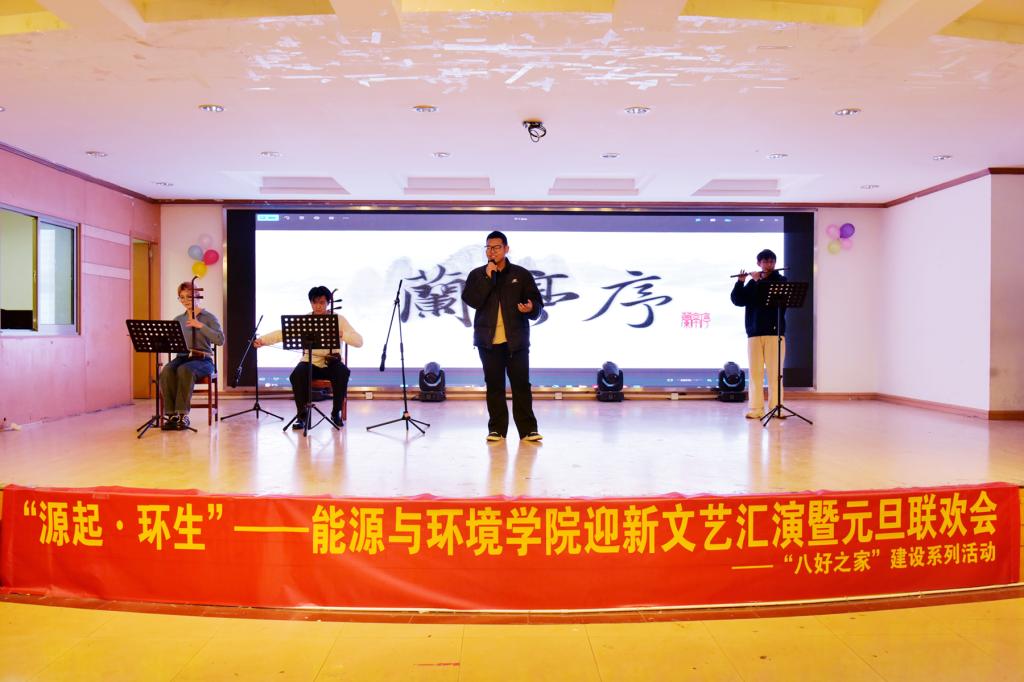 联欢会上,同学们奉献了用心精彩的演绎,节目涉及说唱、乐器演奏、舞台剧、舞蹈和合唱等多种形式。一曲《兰亭序》让同学们感受到传统乐器的无限魅力,舞台剧《满江红》展现了新时代青年对爱党爱国的深刻理解,华尔兹和探戈的舞蹈演绎点燃了全场热烈的气氛,最后《英国正版365官方网站校歌》和《我爱你中国》的合唱体现了安工大人爱校、爱国的精神品质。辅导员吴飞和范浩东在现场寄语2024级员工在新的一年里以更加饱满的精神状态,秉承精工博学、厚德敏行的校训,收获学识上的进步、收获品质上的成长。