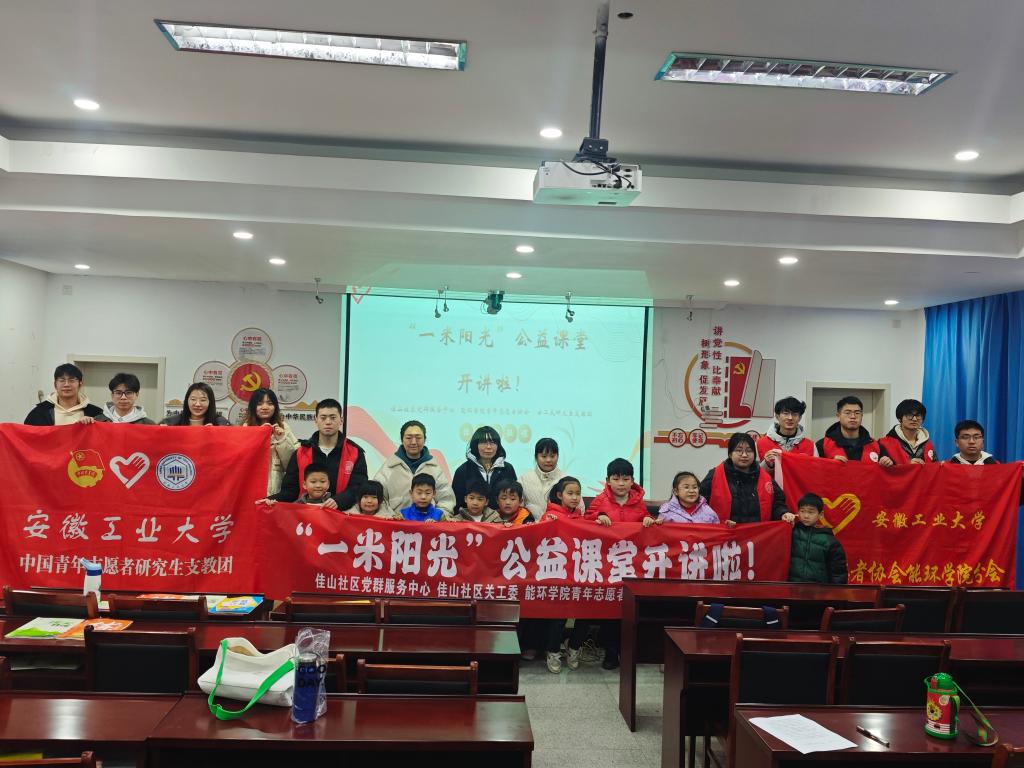 2月22日下午,英国正版365官方网站青年志愿者协会联合安工大研究生支教团,与佳山社区党群服务中心和佳山社区关工委开展合作,启动了新学期的“一米阳光”公益课堂志愿服务活动。