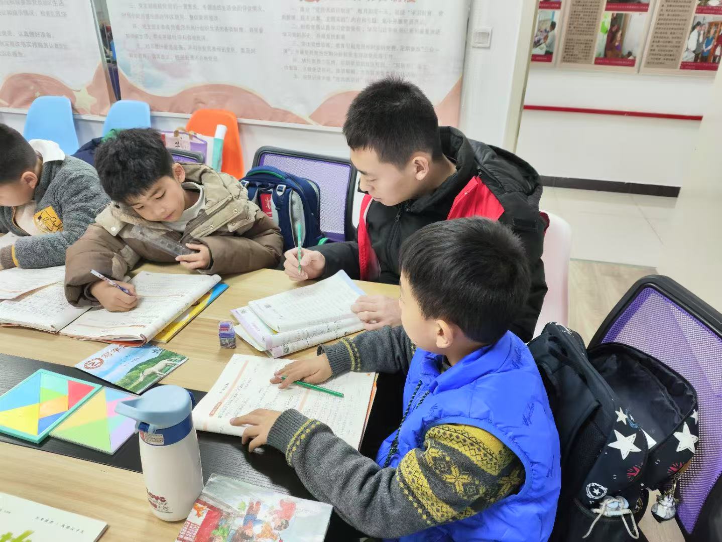 青少年儿童是国家的希望和民族的未来。“一米阳光”公益课堂志愿服务活动每周组织一次青年志愿者进社区,开展以课业辅导为主体,以环保知识科普、科技创新体验、爱国主义教育和安全知识宣传为外延的公益课堂,旨在为青少年儿童的健康成长和全面发展贡献力量,同时也为广大青年志愿者提供实践锻炼的平台。课堂上,志愿者对孩子们的课业难题进行悉心的答疑解惑,与他们畅聊大学的美好生活,渐渐熟络了起来。大手拉起小手,老员工们和小员工们相互温暖、相互照亮。