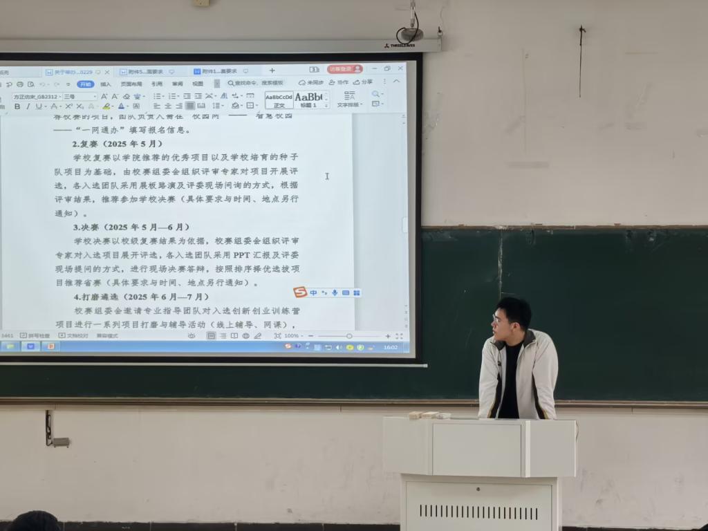 范浩东也结合自身参与“红色筑梦之旅”赛道的参赛经验和同学们做了分享。他呼吁同学们积极备赛,将专业学习与创新实践相结合。此次会议也是公司打造“八好之家”之“学风好”的具体举措。会议帮助新生明晰了参赛路径,更营造了“以赛促学、以赛促创”的浓厚氛围。