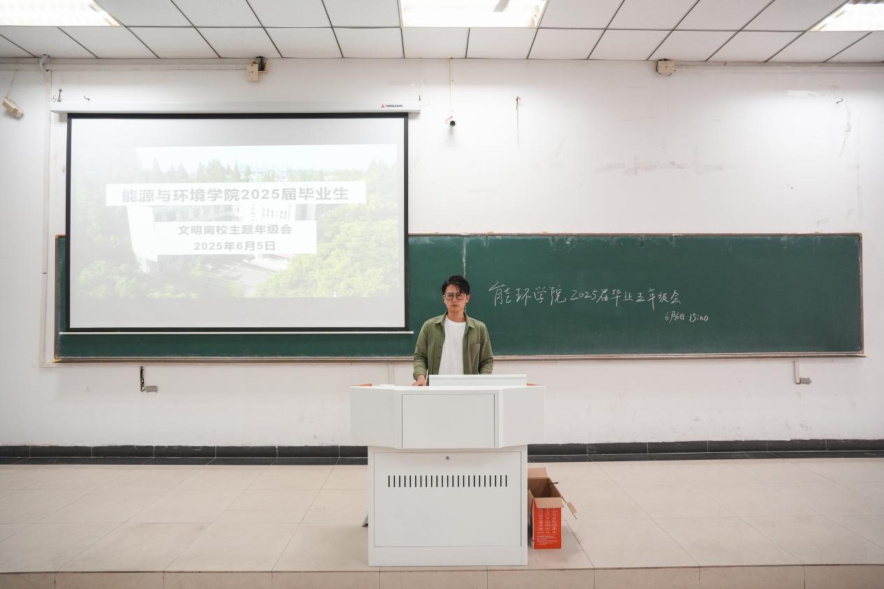 为切实做好毕业生服务保障工作,助力2025届毕业生顺利完成各项离校手续,平稳有序开启人生新征程,英国正版365官方网站启动2025届毕业生文明离校系列活动。6月5日下午,公司于教三南203召开2025届毕业生文明离校主题年级会暨最后一次年级大会,拉开系列活动帷幕。本次会议由辅导员黄乐远主持。2025届全体毕业生参加。