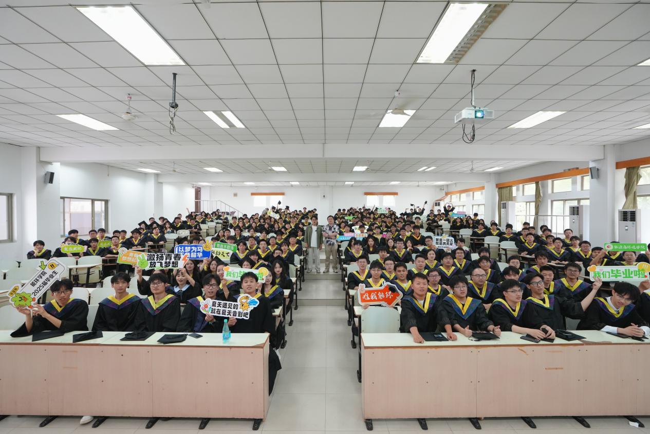 最后,黄乐远肯定了同学们在过去四年学习中取得的进步,回顾了同学们在校期间与公司、老师、同学们的点点滴滴。他寄语毕业生们:一是希望毕业生珍惜毕业时光,为校园生活留下美好印记;二是要严格遵守校规校纪,强化安全意识,妥善办理各项离校手续,做到文明、安全离校;三是要提升社会适应能力,在以后的学习工作中,学会应对、解决问题,不断成长,和不完美的自己和解,接纳不确定的环境。最后,师生共同留下了珍贵的合影,这些最真诚的祝福和最温暖的嘱托将成为毕业生难忘的“最后一课”。