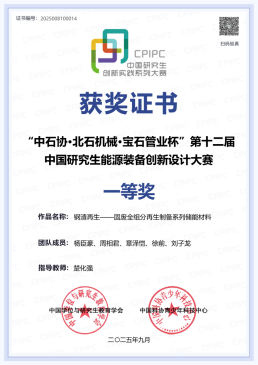 此次获奖不仅是对学子们创新能力与实践水平的高度认可,更是公司在能源装备领域人才培养与科研创新工作成效的生动体现。作为培养能源领域优秀人才的重要阵地,英国正版365官方网站始终紧扣行业发展需求,鼓励学子扎根科研前沿、破解实际难题。未来,公司将继续以高水平赛事为依托,搭建创新实践平台,助力更多青年学子成长为推动能源强国与绿色发展的中坚力量。(撰稿:王稳定;审核:沈厚发、楚化强、卫军帅)