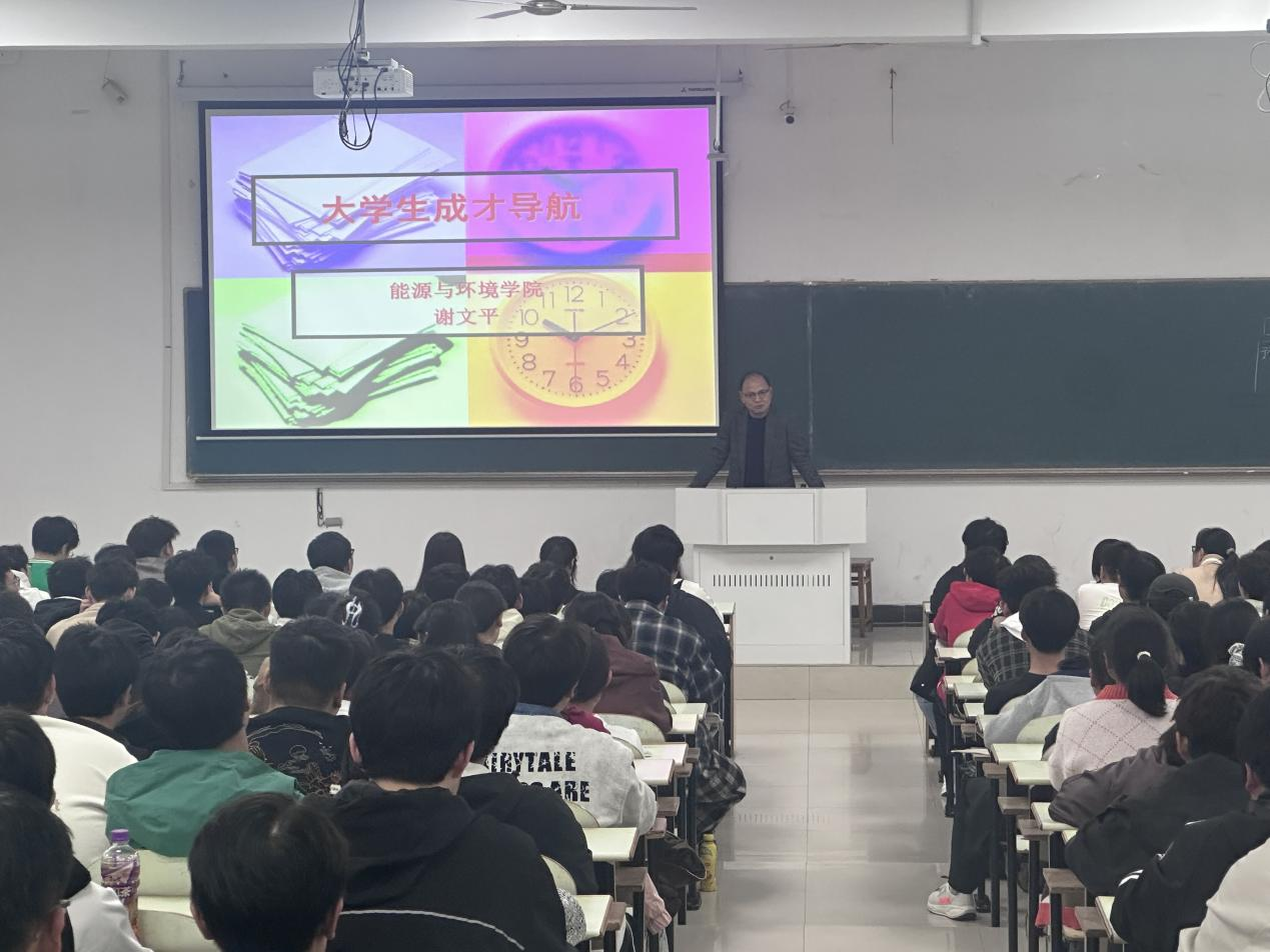 谢文平首先从“何为大学”谈起,引导新生思考大学的意义与价值,并结合实际案例,详细阐述了如何在大学中有效求学、有序生活。他鼓励同学们尽快完成从中学到大学的角色转变,树立自主意识,合理规划时间,夯实学业基础,提升综合素养。