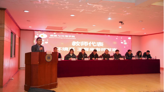 校先进班集体代表、能源与动力工程212班的查旭东同学就如何建设先进班集体、班级的管理制度建设、所取得的工作成效及对未来的展望发表了自己的见解。先进个人代表、环境工程201班保研湖南大学的宋慈同学上台分享了自己三年的学习成长历程,综合成绩第一、科创竞赛夺佳绩、社会实践展担当,用实际行动践行“有志者事竟成”。安徽省科技进步一等奖获得者、优秀教师代表环境系王育来老师总结了这一学年来所取得的成绩,展望了公司的未来发展,同时也对员工们进行了亲切勉励,希望同学们能成为一名为社会做出自身贡献的优秀老员工。