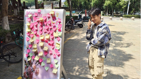 同学当场拨通自己母亲的电话,说出那一句句“妈妈我爱你”,“您辛苦了”,现场洋溢着温暖与感动。活动现场设置“感恩留言墙”,参与者签到后纷纷写下对母亲的暖心话语,百余条留言承载着对母亲的爱意。